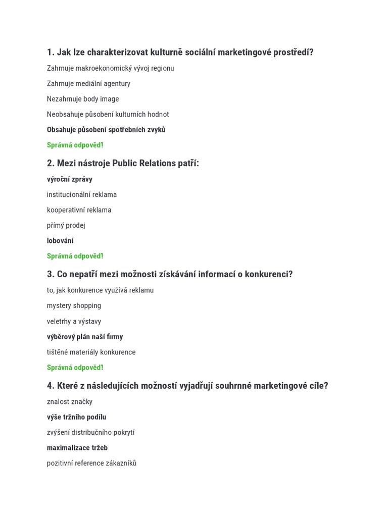 145. Nástroje cenového marketingového mixu se používají při: (2,5/5