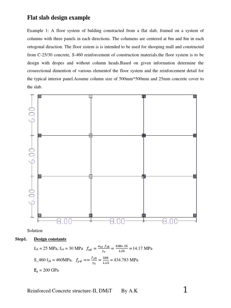 Example 1: A floor system of bulding constracted from a flat slab, framed on a system of