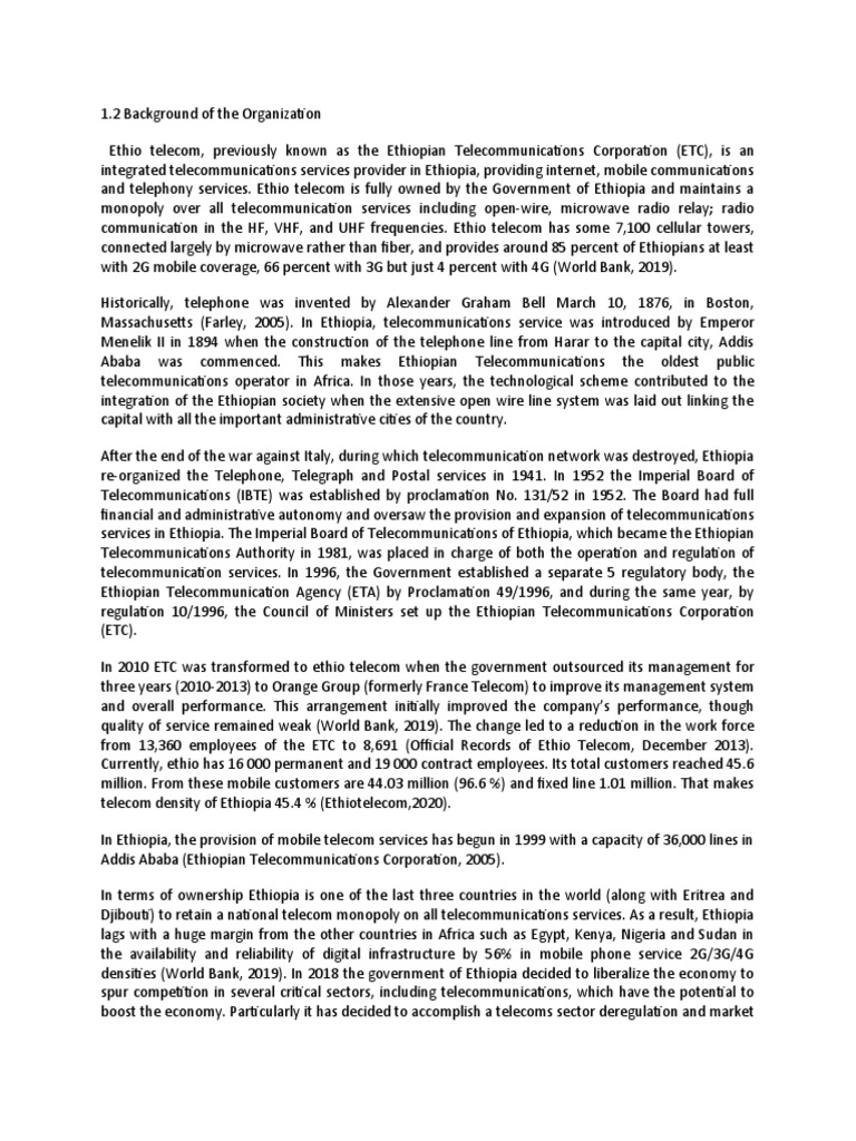 telecom. For instance, in the same year, September 2018, ethio telecom made unprecedented (40%)