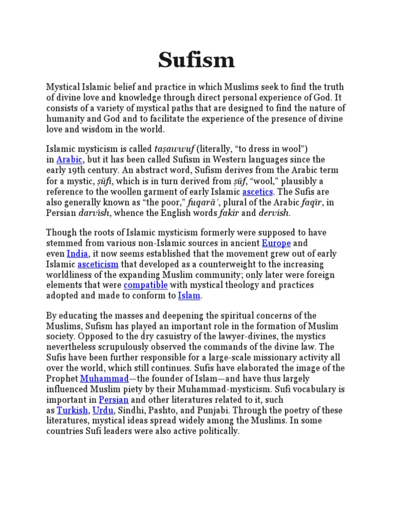 Muslims, Sufism has played an important role in the formation of Muslim