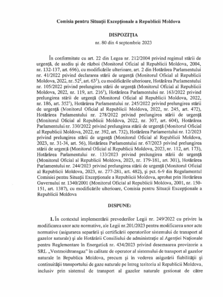 ‘continuitigi transportului de gaze naturale pe integ teritoru al Republicli Moldova,