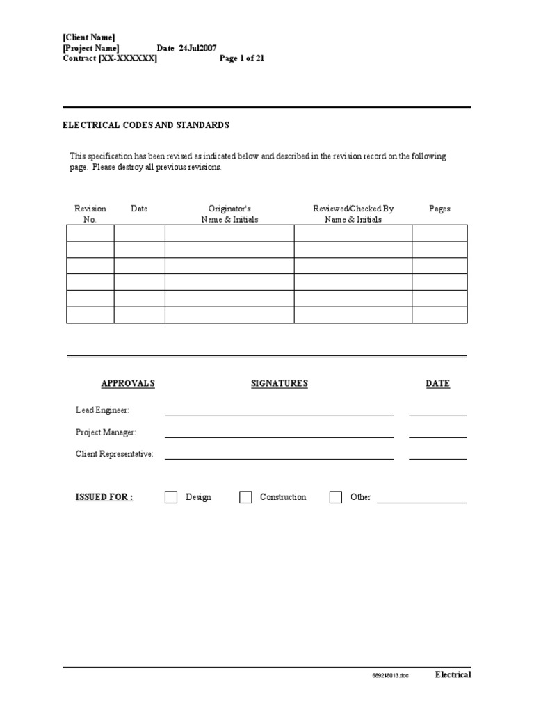 construction, as appropriate. The revision of each document, current at award of contract shall be used unless
