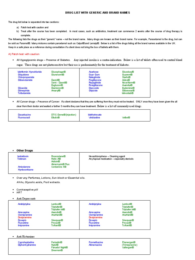 DRUG LIST WITH GENERIC AND BRAND NAMES
