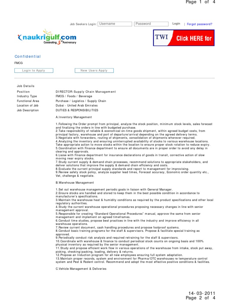 Keywords: 'supply chain director','Directorr','supply chain' Login to Apply New Users Apply Print this job | Email this job | Feedback on this job