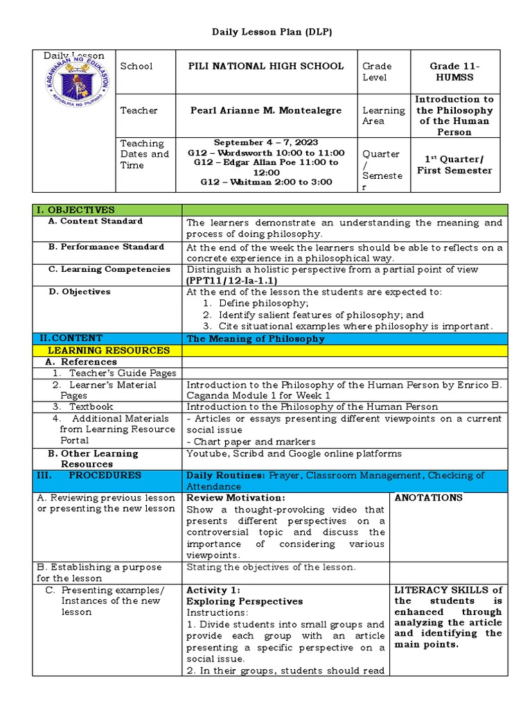 Daily Lesson Plan (DLP)