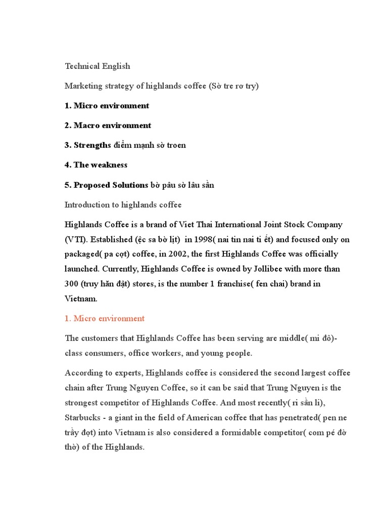 Marketing strategy of highlands coffee (Sờ tre rơ try)