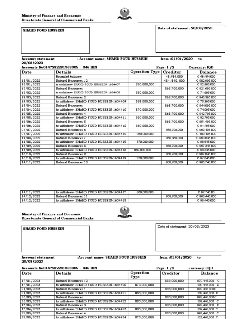 Accounts No0147282281368005 . 046 IBN Page: 1 /2 Currency: IQD