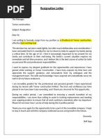 Again, my sincere apology for the sudden notice of resignation but thank you for giving me the