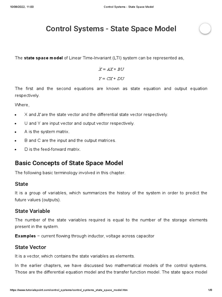 https://www.tutorialspoint.com/control_systems/control_systems_state_space_model.htm 8/8