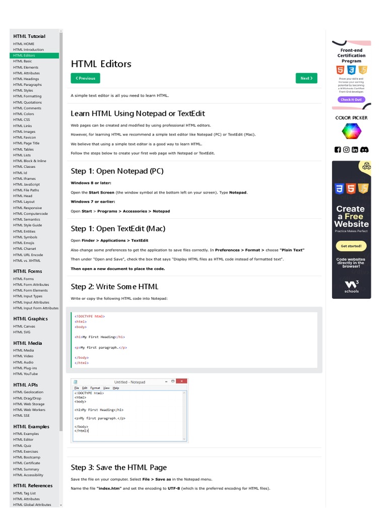 HTML Colors Learn HTML Using Notepad or TextEdit COLOR PICKER