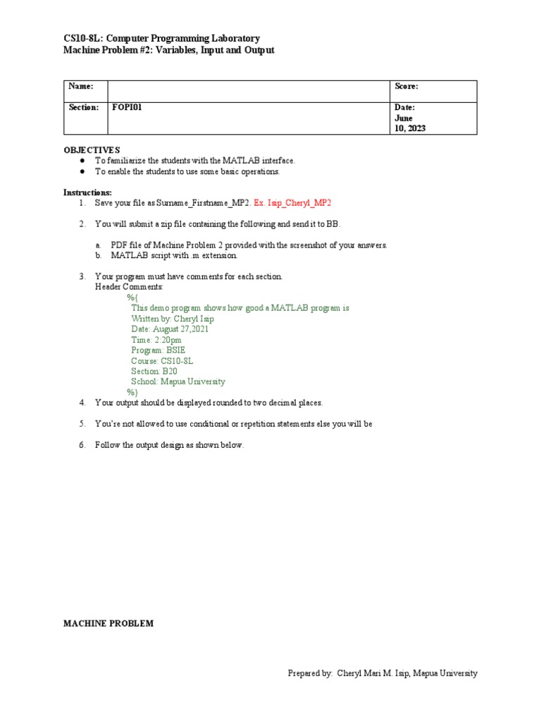 Machine Problem #2: Variables, Input and Output