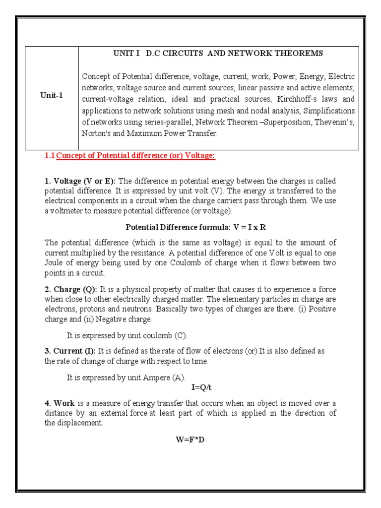 potential difference. It is expressed by unit volt (V). The energy is transferred to the