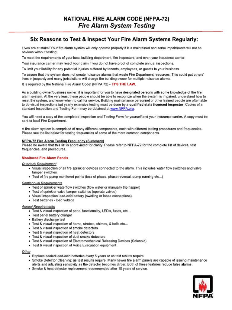 NEPA-72 Fire Alarm Testing Frequency (Summa