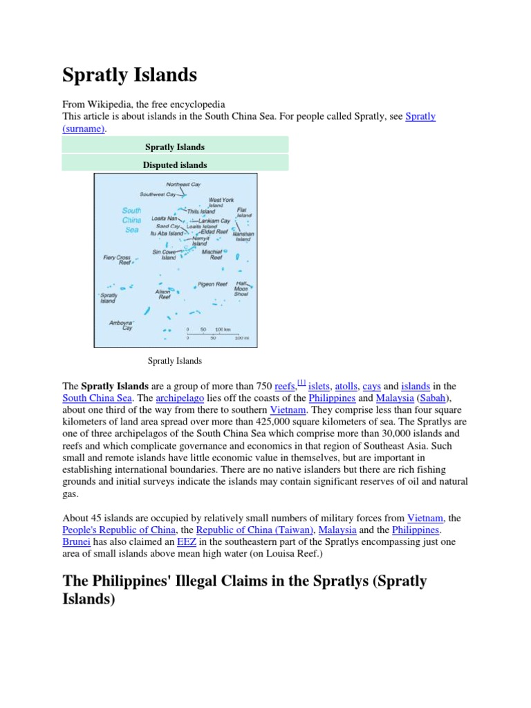 From Wikipedia, the free encyclopedia This article is about islands in the South China Sea. For people called Spratly, see Spratly (surname).