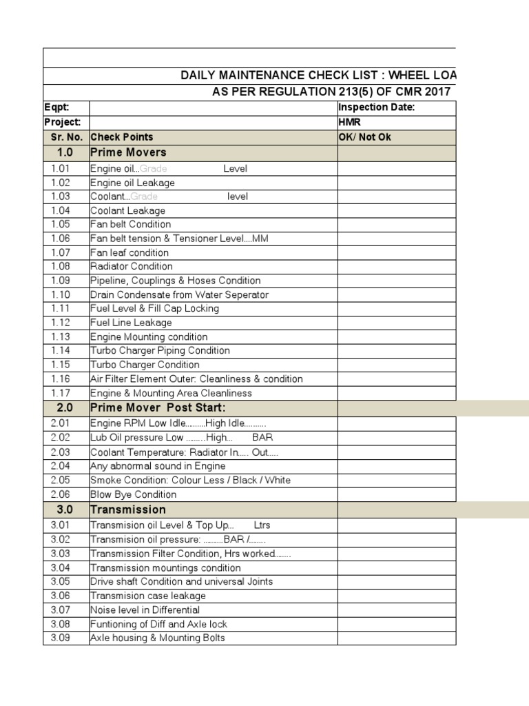 Sr. No. Check Points OK/ Not Ok