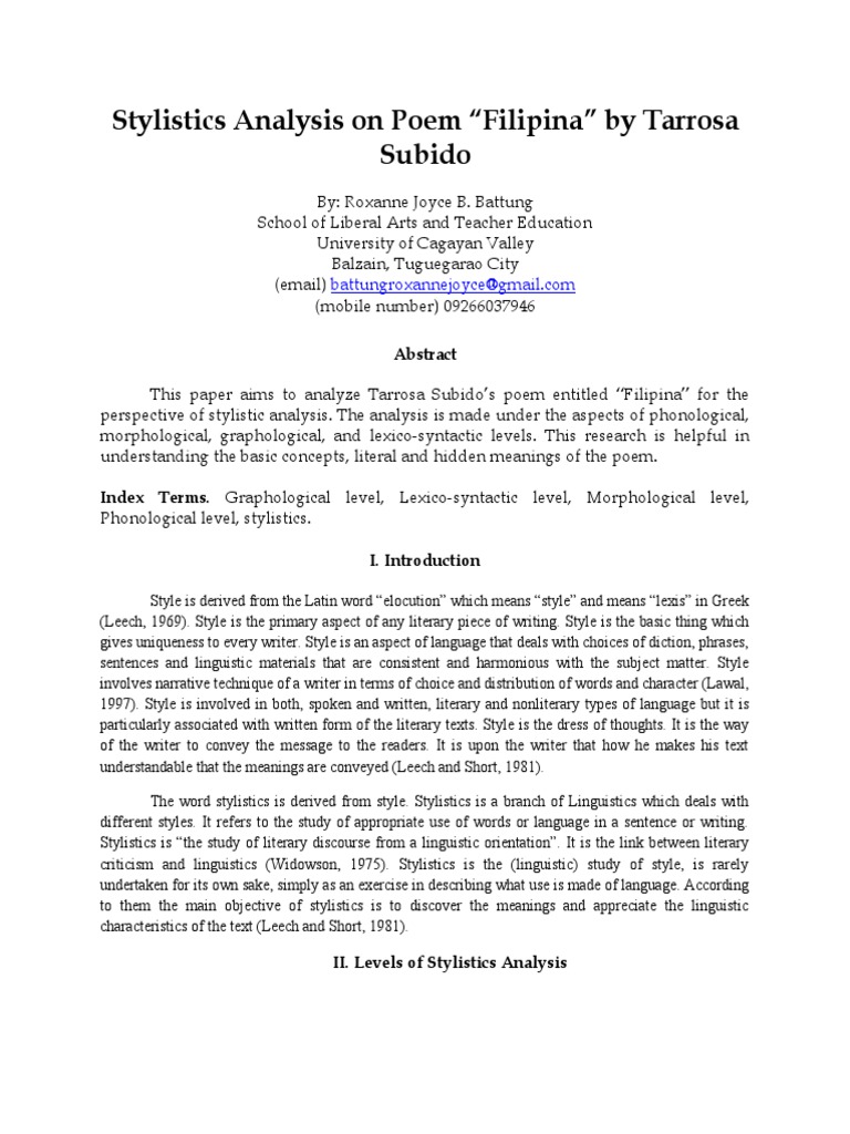 Stylistics Analysis on Poem “Filipina” by Tarrosa