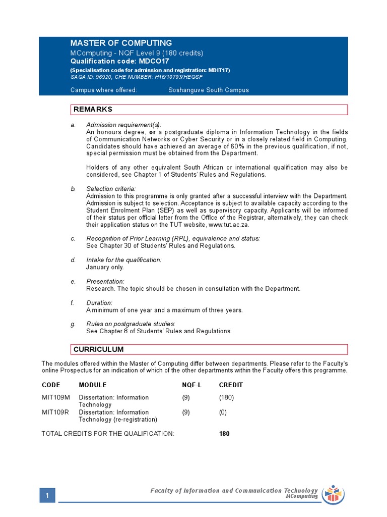 SAQA ID: 96920, CHE NUMBER: H16/10793/HEQSF