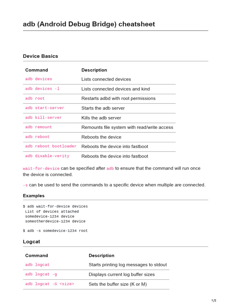 adb (Android Debug Bridge) cheatsheet