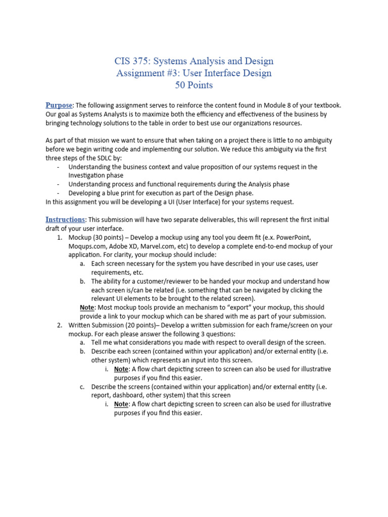 CIS 375: Systems Analysis and Design