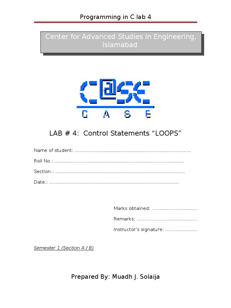 LAB # 4: Control Statements LOOPS