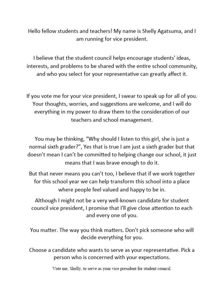 Vote me, Shelly, to serve as your vice president for student council.
