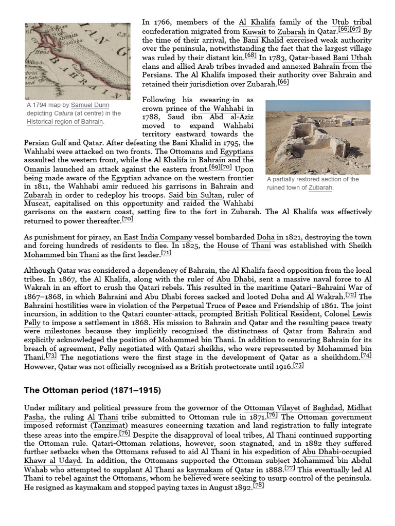 Thani.[73] The negotiations were the first stage in the development of Qatar as a sheikhdom.[74]