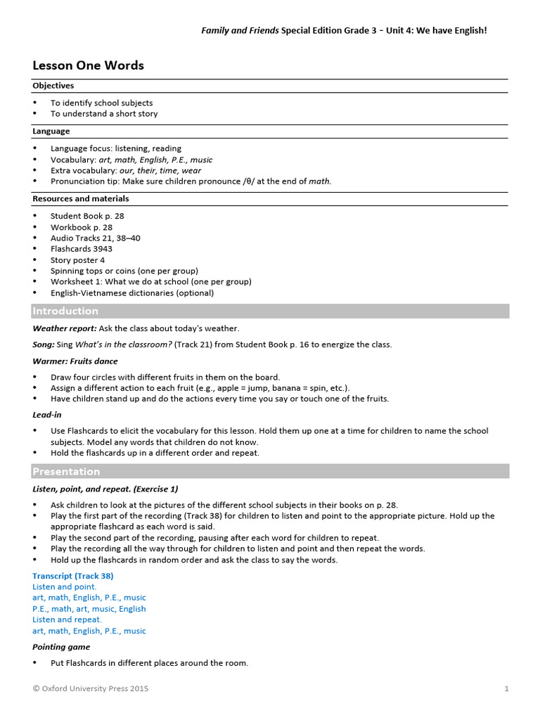 Grade 3 English Lesson Plan: Unit 4
