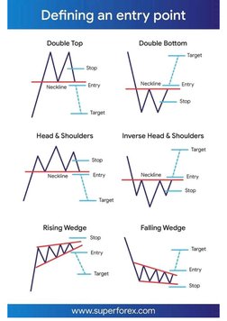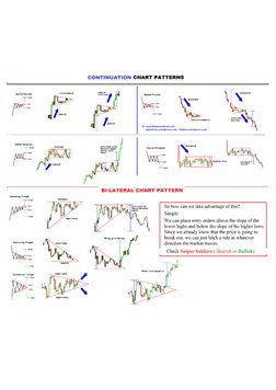 Reversal Chart Patterns: Illustrates various reversal chart patterns like double tops, double bottoms, and others to identify potential market reversals. Continuation Chart Patterns: Depicts continuation patterns that signal the continuation of an existing trend, including bullish and bearish flags and pennants. Major Signals Chart: Covers major candlestick signals such as Doji, Engulfing, and Hammer, providing insights into market sentiment. Chart Patterns Cheat Sheets: Provides cheat sheets summarizing various chart patterns in continuation and reversal categories for quick reference. Candle Patterns: Details different candle patterns indicating bullish or bearish trends, including single, double, and triple candle patterns. Chart Patterns Overview: Summarizes various chart patterns across reversal, continuation, and neutral categories with brief descriptions. Trading Chart Patterns: Highlights important chart patterns used in trading decisions, distinguishing between bullish and bearish indicators. Defining an Entry Point: Explains entry point strategies using chart patterns like Double Top and Rising Wedge for making informed trades. Continuation and Reversal Patterns: Examines in-depth continuation and reversal patterns in chart analysis, detailing characteristics and entry signals. Best Entry Strategies: Presents the best entry strategies using chart patterns such as Supply Zone and Fibonacci Retracement for maximized trading performance. Support & Resistance: Describes support and resistance zones with indicators like Fibonacci levels and pivot points in chart analysis. Institutional Price Action: Offers a comprehensive cheat sheet on institutional price action for advanced chart reading and interpretation. Hidden Divergence: Discusses hidden divergence signals in charts, highlighting MACD and price behavior discrepancies. Most Profitable Patterns: Showcases the most profitable trading patterns such as Head & Shoulders and Triangles for predicting price movements. RSI Diversion: Explores RSI divergence patterns to evaluate strength and momentum in market trends for strategic trading. ee pe ry