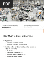 between orders 4) Total inventory control costs constant demand, constant lead time, single delivery per order, D=2000 Stdv = 3000 LT = 7 days LT 97% = 1.88 (Z T = Lead time for replenishment
