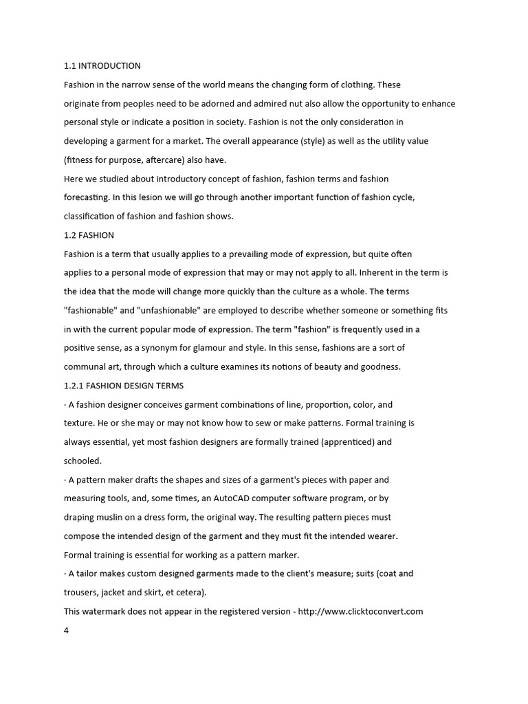 Fashion in the narrow sense of the world means the changing form of clothing. These