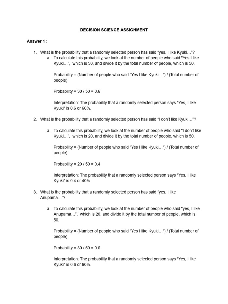 a. Probability of saying "Like Kyuki" and "Don't like Anupama" :