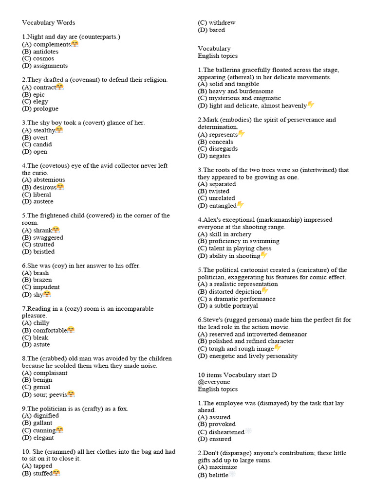 2.They drafted a (covenant) to defend their religion. appearing (ethereal) in her delicate movements.