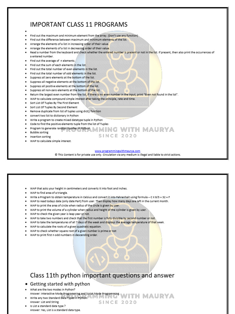 IMPORTANT CLASS 11 PROGRAMS