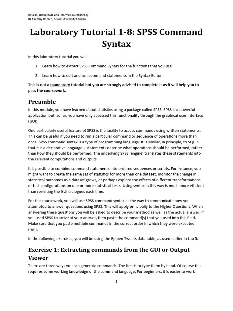 Laboratory Tutorial 1-8: SPSS Command
