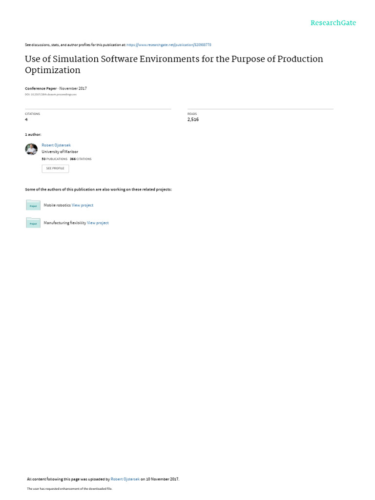 Environments for the Purpose of Production Optimization, Proceedings of the 28th DAAAM International Symposium,