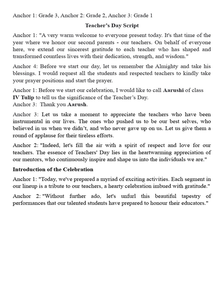 Teacher’s Day Script
