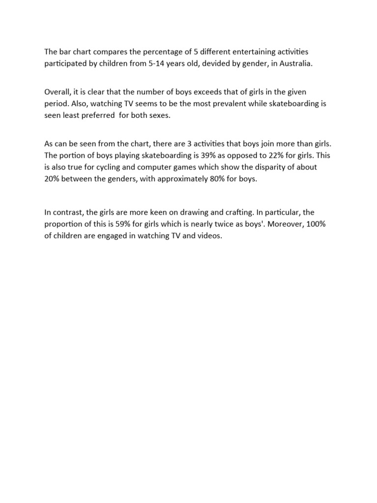 As can be seen from the chart, there are 3 activities that boys join more than girls.
