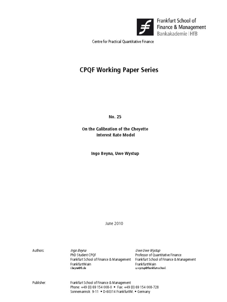 Printed edition: 25.00 + 2.50 shipping Download: Working Paper: http://www.frankfurt-school.de/content/de/research/Publications/list_of_publication0.html CPQF: http://www.frankfurt-school.de/content/de/research/quantitative_Finance/research_publications.html Order address / contact Frankfurt School of Finance & Management Sonnemannstr. 9 11 D 60314 Frankfurt/M. Germany Phone: +49 (0) 69 154 008 734 Fax: +49 (0) 69 154 008 728 eMail: m.biemer@fs.de Further information about Frankfurt School of Finance & Management may be obtained at: http://www.fs.de