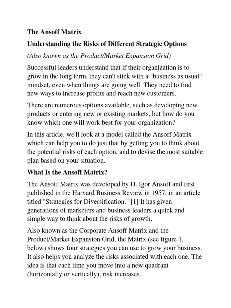 In this article, we'll look at a model called the Ansoff Matrix