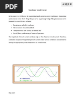 In an ideal transformer, the magnetizing current would rise to approximately twice its normal peak value as well, generating the necessary mmf to create this higherthan-normal flux. However, most transformers aren't designed with enough of a margin between normal flux peaks and the saturation limits to avoid saturating in a condition like this, and so the core will almost certainly saturate during this first half-cycle of voltage. During saturation, disproportionate amounts of mmf are needed to generate magnetic flux. This means that winding current, which creates the mmf to cause flux in the core, will disproportionately rise to a value easily exceeding twice its normal peak: