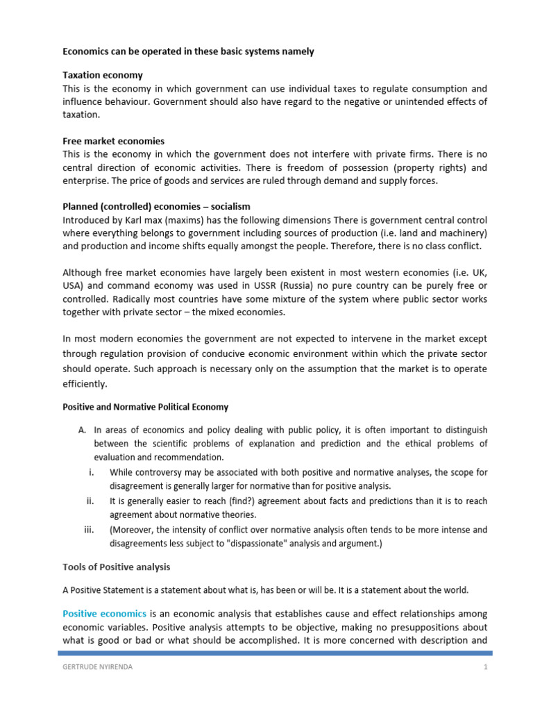 economic variables. Positive analysis attempts to be objective, making no presuppositions about