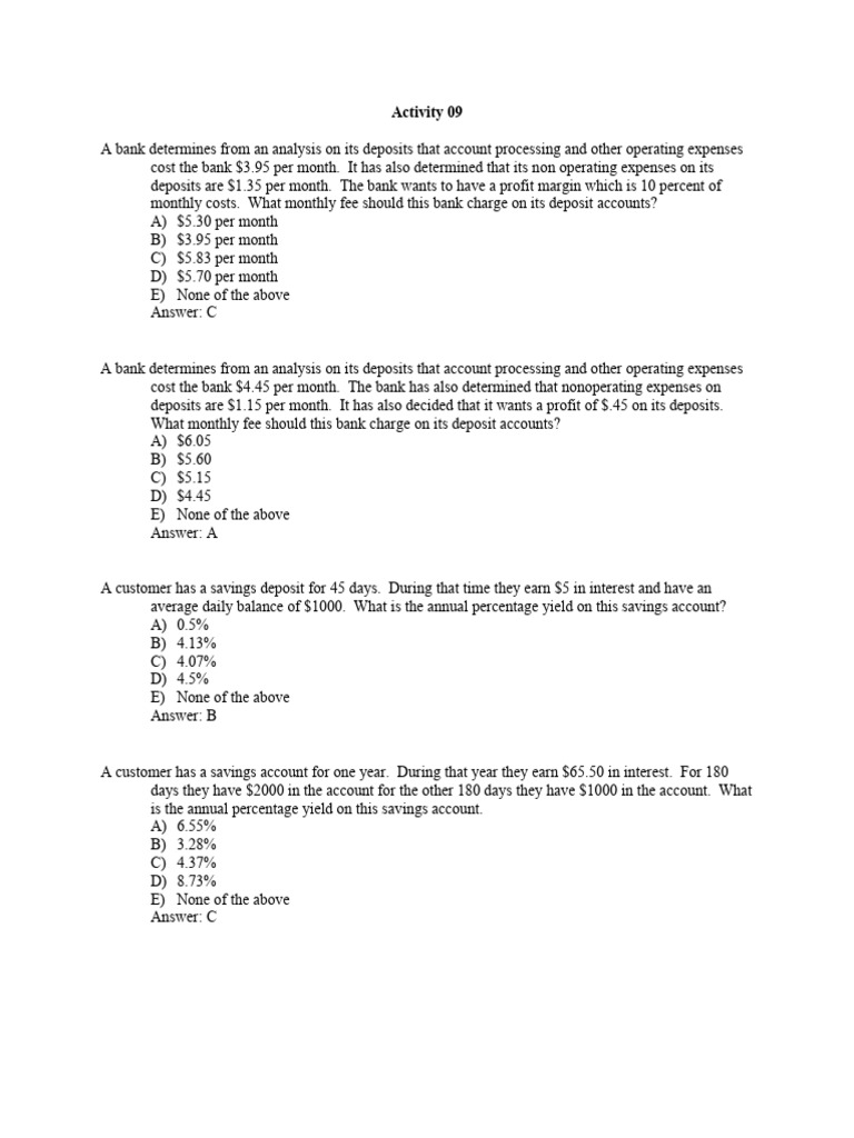 deposits are $1.15 per month. It has also decided that it wants a profit of $.45 on its deposits.