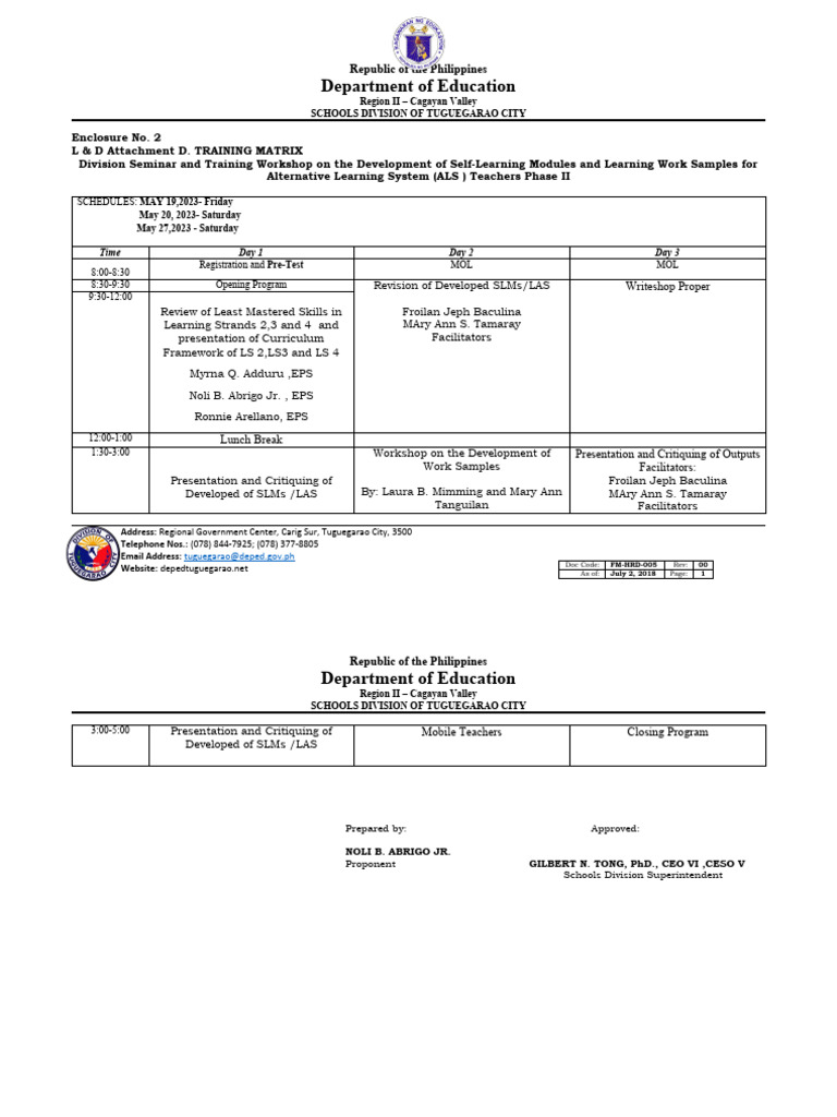 Website: depedtuguegarao.net As of: July 2, 2018 Page: 2