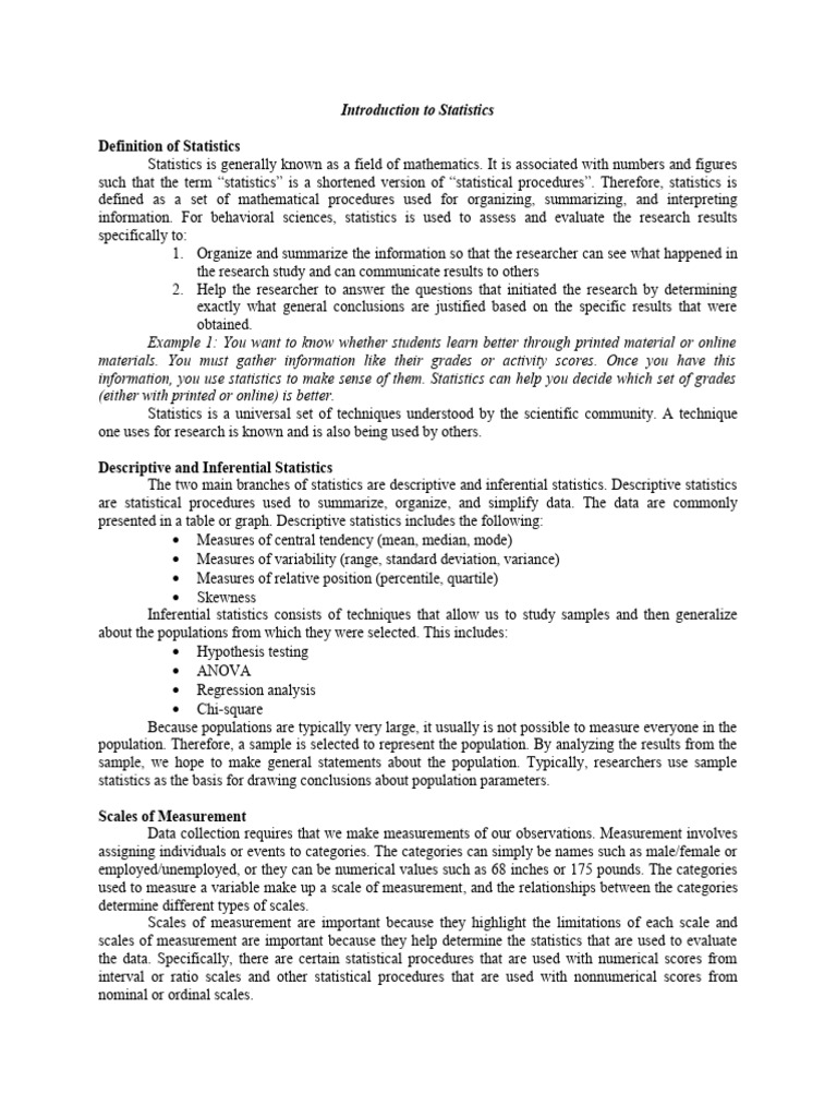 information. For behavioral sciences, statistics is used to assess and evaluate the research results