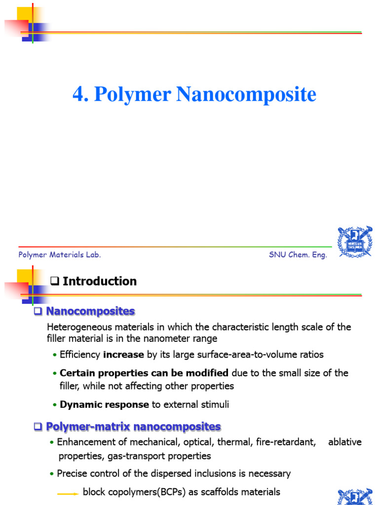 • Enhancement of mechanical, optical, thermal, fire-retardant, ablative