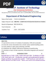 Subject code 2ME8103 Subject Name Computer Aided Manufacturing
