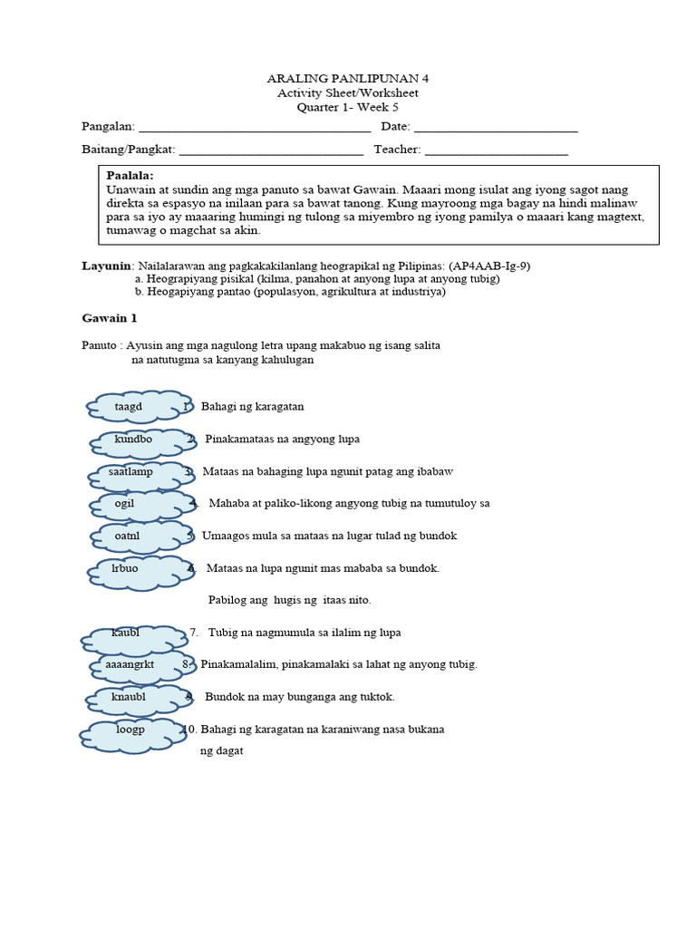 Unawain at sundin ang mga panuto sa bawat Gawain. Maaari mong isulat ang iyong sagot nang