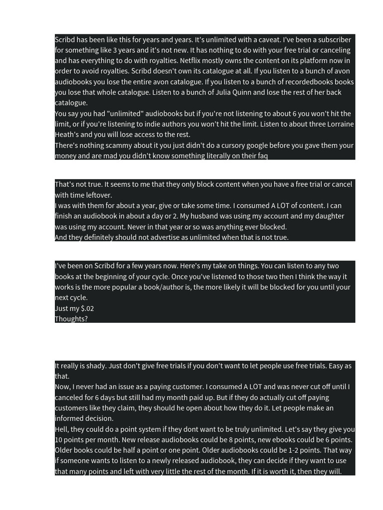 order to avoid royalties. Scribd doesn't own its catalogue at all. If you listen to a bunch of avon