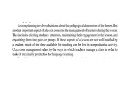 • Teachers do not plan lessons in a vacuum. They do so in the context