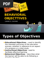 BEHAVIORAL OBJECTIVES - learning objectives, make use of modifier behavioral learning to denote that this type